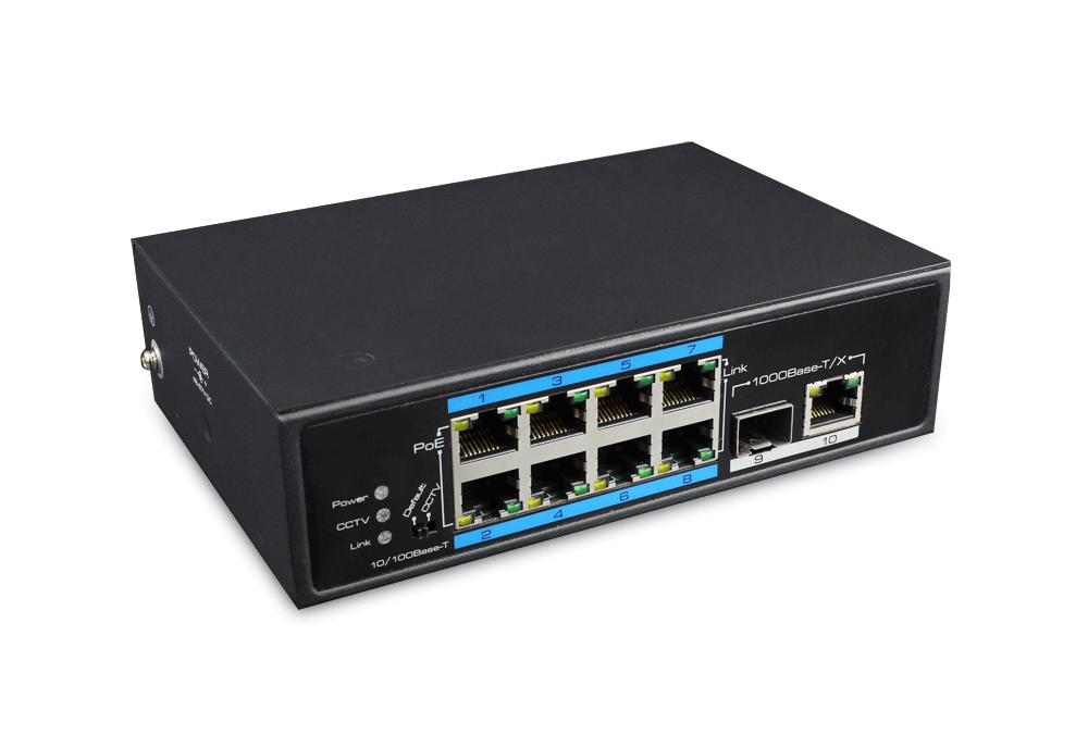 UTP7108E-POE это - 8 портовый неуправляемый промышленный гигабитный PoE коммутатор. Имеет 8*10/100Base-T RJ45 PoE портов, 1*10/100/1000Base-T RJ45 и 1*1000Base-X SFP порт.