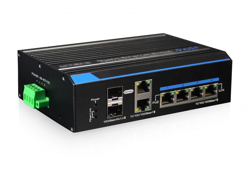 UTP7204GE-HPOE - 4 портовый гигабитный неуправляемый POE коммутатор. Коммутатор имеет 4 Gigabit порта нисходящей линии (downlink), и 4 порта восходящей линии (uplink), 2 оптических и 2 Ethernet порта. Так же один оптический порт и один Ethernet порт являются Combo.