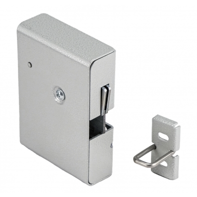 Принцип работы: при подаче напряжения питания, замок разблокирует дверь и встроенным толкателем выталкивает ее. Таким образом, открытая дверь сразу видна и нет необходимости устанавливать на дверь ручку.