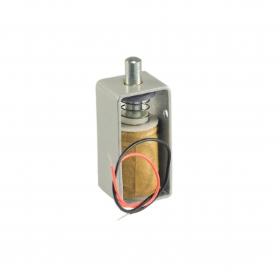 При подаче напряжения питания электромагнитным полем якорь втягивается в замок.